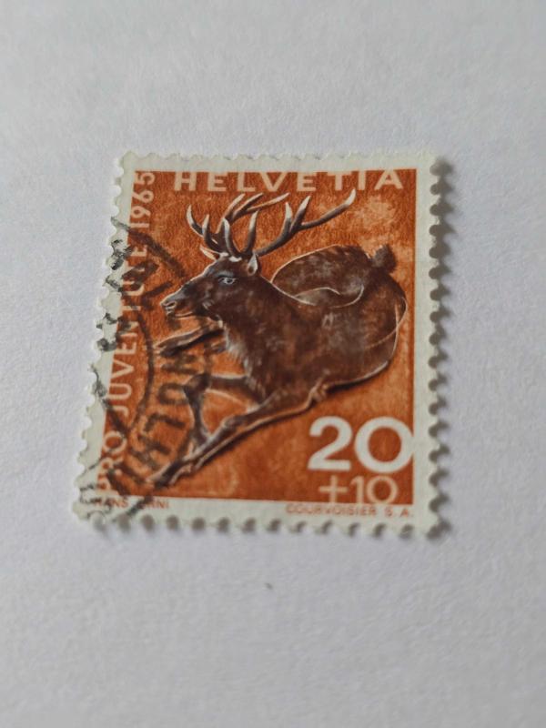 Seri/Amaç: Pul, İsviçre'de gençlik refahı için fon sağlamak amacıyla her yıl çıkarılan bir yardım pulu serisi olan "Pro Juventute" serisine aittir. Tasarım: Pulun üzerinde, mavi bir zemin üzerinde ayakta duran ve birbirine bakan iki adet dağ sıçanı (Marmot) resmi bulunmaktadır. Ülke: Pulun üst kısmında belirtilen HELVETIA (İsviçre'nin Latince adı) ibaresi İsviçre'ye ait olduğunu gösterir. Değer: Pulun üzerinde, bir kısmı mürekkeple kapatılmış olsa da, nominal değeri 10+10 centimes (veya rappen) olarak okunmaktadır. Buradaki ikinci '10' kısmı, yardım pulu olduğu için gençlik refahı fonuna giden ek ücreti temsil eder. Sanatçı/Gravürcü: Pulun alt kısmında HANS ERNI (sanatçı) ve COURVOISIER S. A. (baskı evi) isimleri yer almaktadır. Emisyon Yılı: 1965