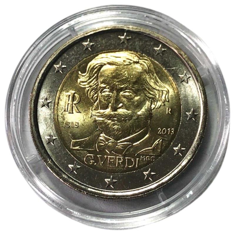 🎼 2013 İtalya 2 Euro – Giuseppe Verdi'nin 200. Doğum Yılı “G. VERDI – 1813 / 2013” - Ülke: İtalya - Değer: 2 Euro - Yıl: 2013 - Konu: Giuseppe Verdi'nin doğumunun 200. yılı - Baskı Miktarı: 10.000.000 adet - Dolaşıma Çıkış: Mart 2013 - Malzeme: Bimetal – iç halka nikel pirinç, dış halka bakır-nikel - Kenar Yazısı: 2★ - Tasarım Özellikleri: - Ön yüzde: Sola bakan, üç çeyrek profilde Giuseppe Verdi’nin büstü - Sol üstte: “RI” (İtalyan Cumhuriyeti monogramı) ve “1813” - Sağda: “R” (Roma Darphanesi işareti) ve “2013” - Altta: “MCC” (tasarımcı Maria Carmela Colaneri'nin monogramı) ve “G. VERDI” yazısı - Dış halka: Avrupa Birliği’nin 12 yıldızı --- 🎵 Aida, La Traviata, Nabucco gibi ölümsüz operaların bestecisi Giuseppe Verdi, bu anlamlı tasarımla Avrupa tarihî figürler serisine katılıyor. 📈 Yüksek tirajına rağmen, müzik ve sanat temalı koleksiyonların vazgeçilmez parçalarından biri hâline gelmiş durumda. 🇮🇹 İtalyan kültürünün sembol isimlerinden birine adanmış bu 2 Euro, sanatsever koleksiyoncular için kaçırılmaması gereken bir fırsat! 📦 Müzik, tarih ve euro commemorative koleksiyonlarına değer katmak isteyenler için hazır! Fatura Gonderilmeyecektir