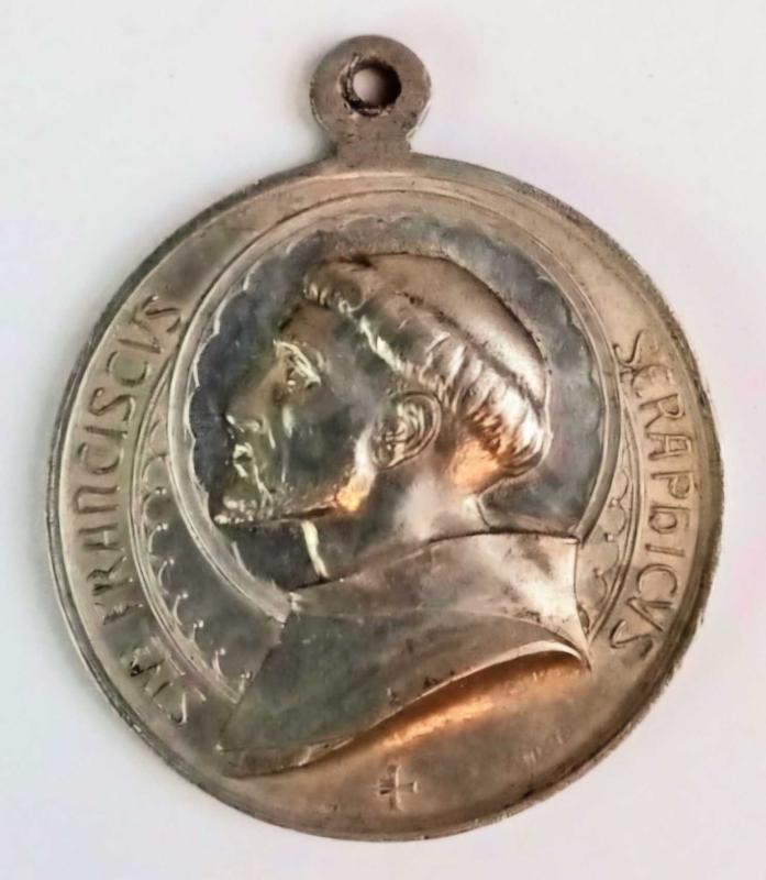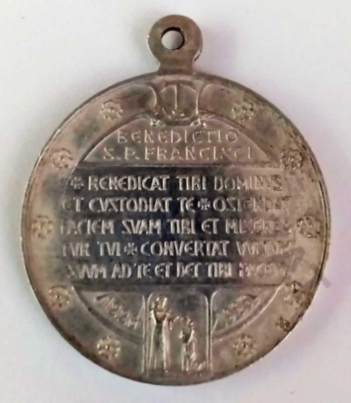 İtalya, Assisili Aziz Francesco'nun 700'ncü Yıl Dönümü Temalı Hatıra (Kolye) Madalyonu (1226-1926) Hristiyanlığın En Saygı Duyulan Dini Figürlerinden Biridir. Ön-Arka Yüzünde: Aziz Francesco'nun Sola Bakan Bir Portresi ve Kutsama Duası Yer Almaktadır. 1926, Gümüş Kaplama. (3 cm) Nadir Çıkar.