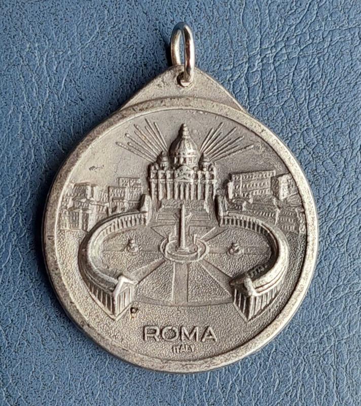 İtalya, Aziz II. John Paul'ün Resminin Yer Aldığı Hatıra Katolik Madalyon - Arka Yüzde: Aziz Petrus Bazilikası (Vatikan/Roma) Yer Almaktadır. 1980'ler. Gümüş Tonlu/Patinalı Haliyle.