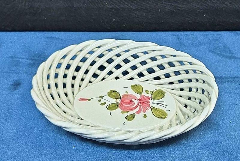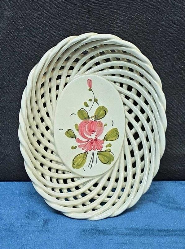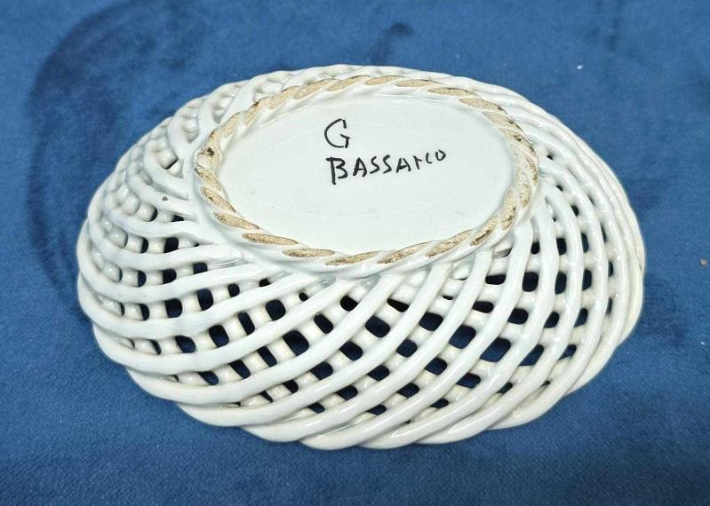 İtalya Bassano İmzalı El Yapımı Kafes Örme İşçilikli ( Ajurlu ) Tahminen 1960'lar Seramik Çerezlik başlıklı antika/koleksiyon objesi Avrupa menşe’lidir. 1950-1999 arası dönemine aittir.