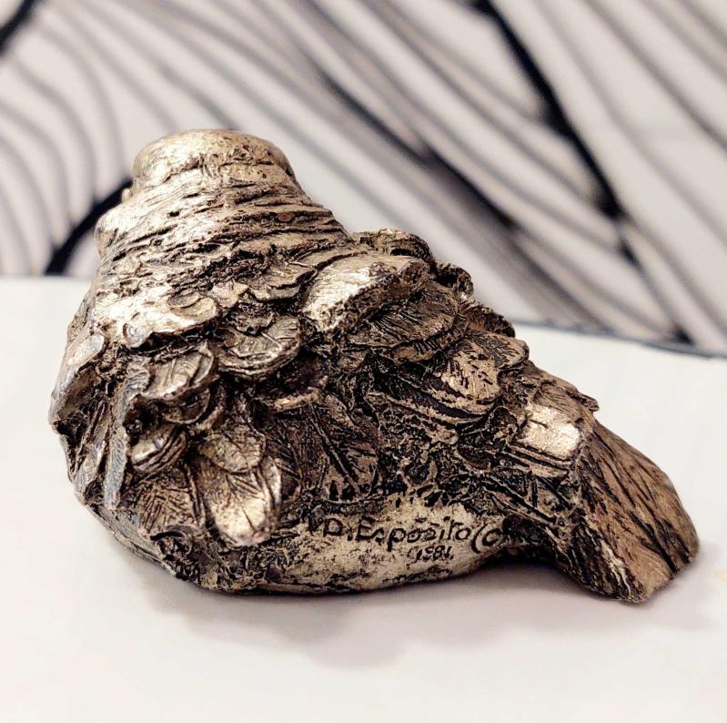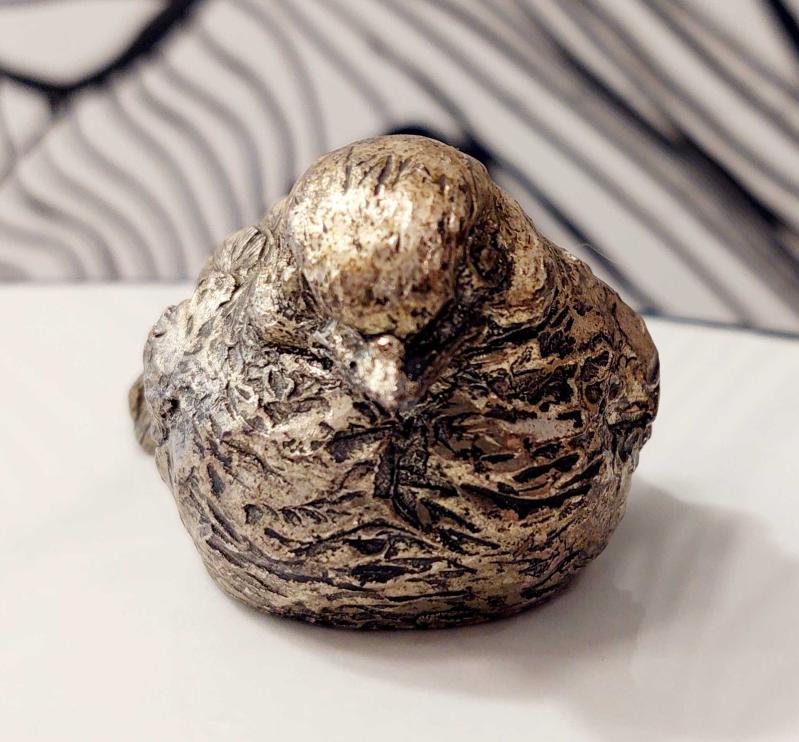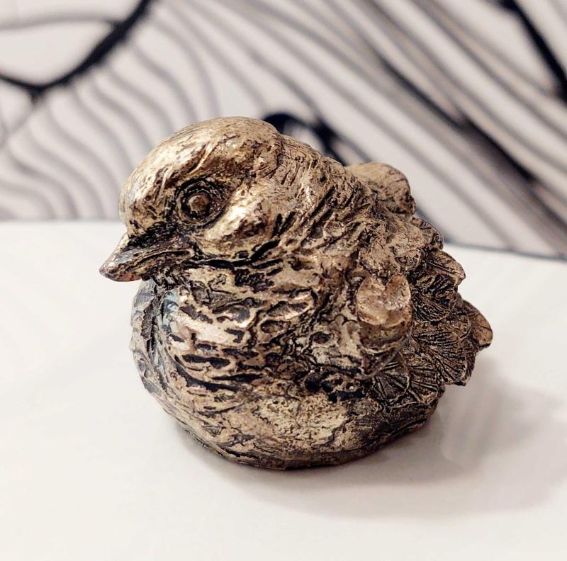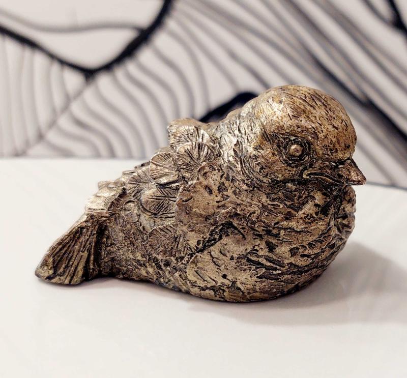 İtalya, Kuş Figürü Serçe/Çalıkuşu. Dekoratif Sevimli Bir Kağıt Ağırlığı! D. Esposito Damgalı-İtalya'da Üretilmiştir. 1984 Tarihli. (Koleksiyonluk) El Yapımı. Gümüş Kaplama. Reçine/Laminate. Nadir Çıkar. (45×70×40 mm)