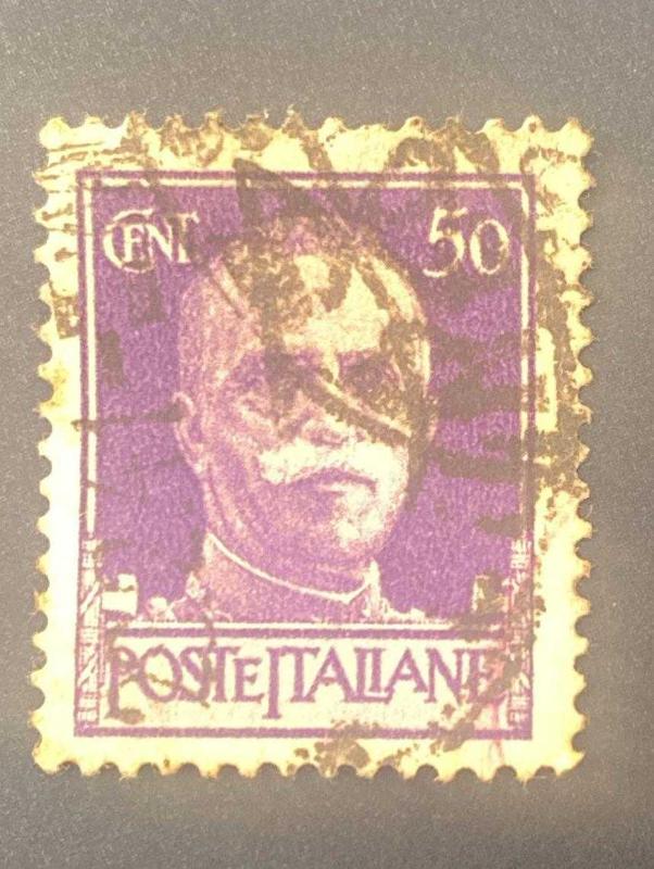 İtalya Pulu - Italy Stamp - Postadan Geçmiş Pul Filateli - DAMGALI - KRAL III. VITTORIO EMANUELE TEMALI PUL, 50 PARA - YABANCI PULLAR - NOSTALJİK DOĞUM GÜNÜ HEDİYESİ