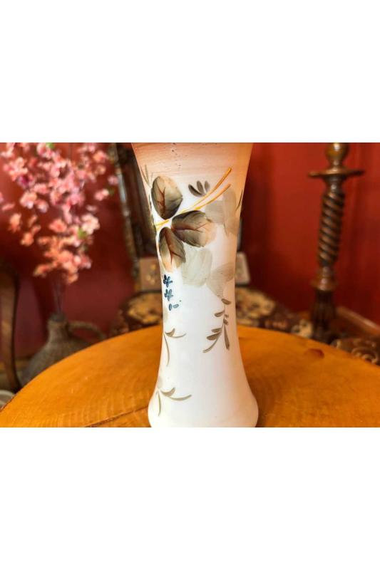 İtalyan El boyama Opalin vazo 18 cm boyunda 7 cm çapında başlıklı antika/koleksiyon objesinin menşei belirtilmemiştir. Objenin ait olduğu dönem bilinmeketedir.