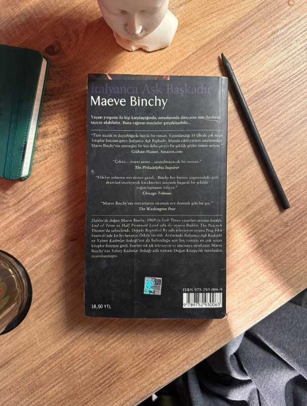 Yaşam yorgunu iki kişi karşılaştığında, omuzlarında dünyanın tüm dertlerini taşıyor olabilirler. Buna rağmen mucizeler gerçekleşebilir... "Tüm incelik ve duyarlılığıyla büyük bir roman. Yayımlandığı 18 ülkede çok satan kitaplar listesine giren İtalyanca Aşk Başkadır, İrlanda edebiyatının ustalarından Maeve Binchy´nin yeteneğini bir kez daha çarpıcı bir şekilde gözler önüne seriyor." - Graham Hamer, Amazom.com- "Çekici... insanı saran... unutulmayacak bir roman." The philadelphia İnguirer "Hikaye anlatımı son derece güzel... Binchy her birinin yaşamındaki gizli dramları inceleyerek karakterleri üzerinde başarılı bir şekilde yoğunlaşmasını biliyor." - Chicago Tribune- "Maeve Binchy´nin romanlarını okumak eve dönmek gibi bir şey." - The Washington Post-