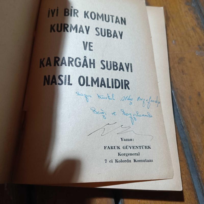 İyi Bir Komutan Kurmay Subay ve Karargah Subayı Nasıl Olmalıdır (Kurtul Altuğ'a İmzalı İthaflı), KORGENARAL FARUK GÜVENTÜRK tarafından kaleme alınmıştır. İyi Bir Komutan Kurmay Subay ve Karargah Subayı Nasıl Olmalıdır (Kurtul Altuğ'a İmzalı İthaflı) adlı eser Türkçe dilindedir.