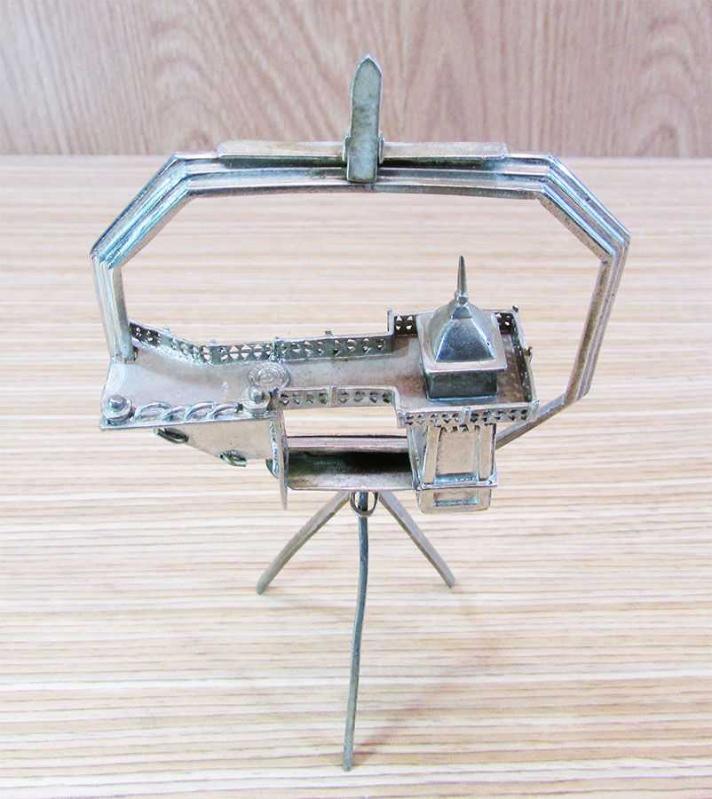 İZMİRLİ SANATÇI "TÜRKİZ" TARAFINDAN SINIRLI MİKTARDA YAPILMIŞ, İMZA VE DAMGA KABARTMASI ÜZERİNDE, BİR RESSAM ŞÖVALELİ TUVAL FORMUNDA KOLEKSİYONLUK "İZMİR TARİHİ ASANSÖR BİNASI" BİBLOSU KALIN BAKIR ÜZERİ GÜMÜŞ KAPLAMALI DETAYLI ÖZEL EL SANATLI,KALIN VE DOLGUN YAPILI BİLENLER BU ÜRÜNÜ DE ZATEN BİLİR DETAYLARI ÜRÜN RESİMLERİNDE GENİŞLİĞİ 8cm,YÜKSEKLİĞİ 15cm .