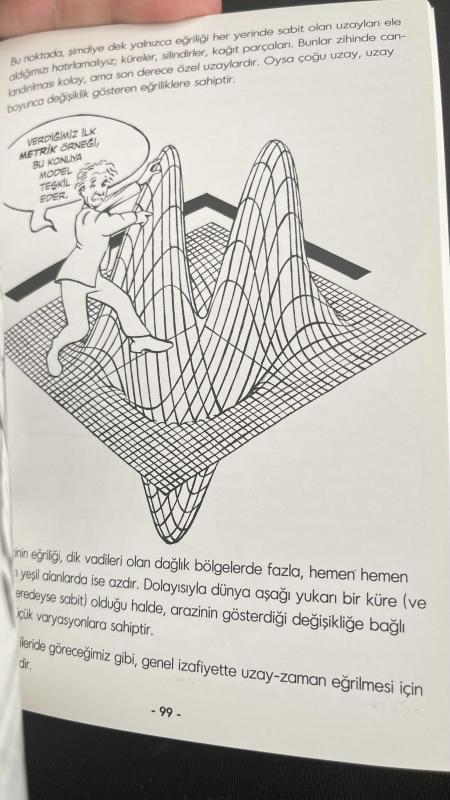 Einstein E = mc2 ile ne demek istedi? Karadelik nasıl oluşur? Dördüncü boyutun yararı nedir? “Şimdi kemerlerinizi bağlayın, sarsıntılı bir yolculuk olacak…” Sarsıntılı ama eğlenceli. Aynı zamanda ivmeli. Ve tabii ki izafi. Fakat kesinlikle nefes kesici! Kütleçekimi dalgaları üzerinden ilerlerken uzay-zaman dört boyuta ayrılacak, dalgalar ışık hızında yol alacak, saatlerimiz yavaşlayacak ve evren giderek hızlanacak. Fotonlara çarpanlar jeodezik hesapla yolunu bulurken, yolunu kaybedenleri kara deliklerden sicim teorisi çıkaracak. Yolculuğumuz sadece birkaç saatinizi alacak. Fakat belki de o sırada dünyada yıllar geçmiş olacak?! Einstein’ın Genel İzafiyet Teorisi, kuantum teorisiyle birlikte, son 100 yılın fiziğinin iki ana hattından biri olmayı sürdürüyor. O zaman, hazırlanın, Bruce Bassett’ın rehberliğinde ve Ralph Edney’in çizgileri eşliğinde Einstein’ın göz kamaştırıcı, zihin açıcı ve akıl alıcı dünyasına gidiyoruz. “Son derece ilginç bir resimli rehber ... çok eğlenceli bir kitap.” New Scientist
