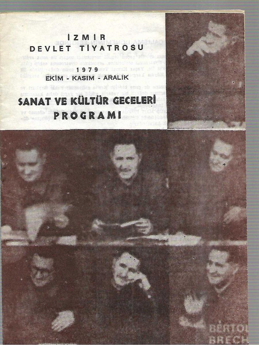 Kitap 1979 yılında Devlet Tiyatroları tarafından [İzmir] yayınlanmıştır. 12 sayfadır. İzmir Devlet Tiyatrosu ( 1979 Ekim - Kasım - Aralık) Sanat ve Kültür Geceleri Programı adlı eser Türkçe dilindedir.