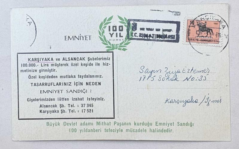 İzmir / Emniyet Sandığı Postadan Geçmiş Damgalı Kart, bir ay önce satışa sunulmuştur.