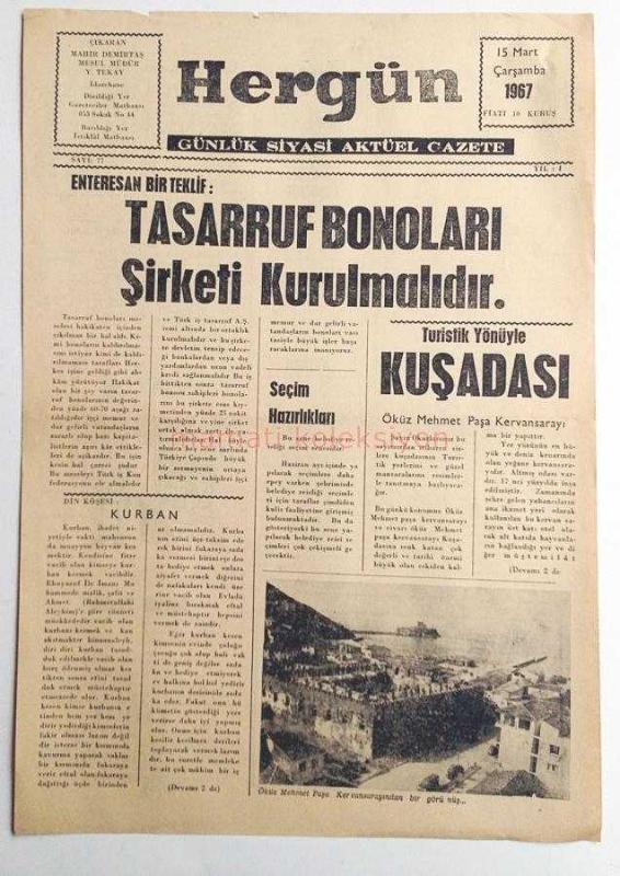 İzmir Hergün gazetesi, 15 Mart 1967 adlı eser, Kitap > Süreli Yayınlar > Gazeteler > Türkiye > Mahalli kategorisinde İkinci El olarak satıştadır.