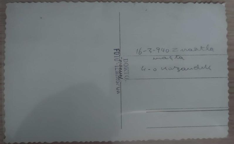 Arkasında kurşun kalemle "Ziraat ile maçta 4-0 kazandık "yazısı ve 16.03.1940 tarihi mevcuttur.