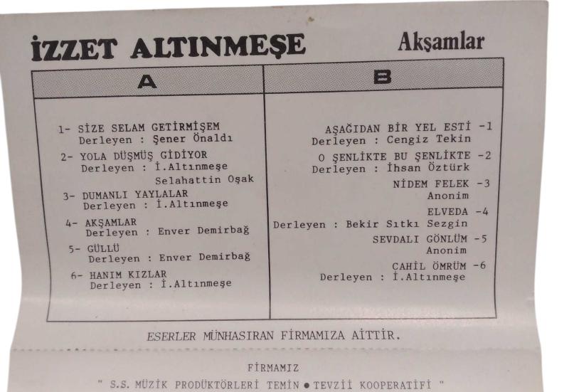 İzzet Altınmeşe - Akşamlar Kaset Emre Plakcılık Kaset-Kartonet Temiz