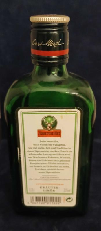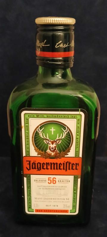 Jägermeister, Kräuter-Likör Şişesi 0,35 l/35%vol *Orijinal Almanya (Deutschland-Seit 1878) "Erlesene 56 Kräter"-Wolfenbüttel Jägermaister Germany *Şişe No.42