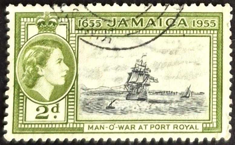 +++ JAMAICA KRALİÇE , PORT ROYAL daki SAVAŞ GEMİLERİ , JAMAICA'nın KOLONİLEŞMESİ 300.YIL 1955 B - DAMGALI, 2 ay önce satışa sunulmuştur.
