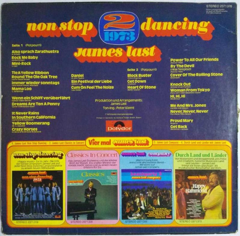 JAMES LAST NON STOP DANCİNG 1973-2 33'LÜK PLAK SIDE-A(POTPOURRI) 1-ALSO SPRACH ZARATHUSTRA 2-ROCK ME BABY 3-MINI-ROCK 4-TIE A YELLOW RIBBON ROUND THE OLE OAK TREE 5-IMMER WIEDER SONNTAGS 6-MAMA LOO 7-WENN EIN SCHIFF VORUBERFAHRT 8-DREAMS ARE TEN A PENNY 9-IT NEVER RAINS IN SOUTHERN CALIFORNIA 10-YELLOW BOOMERANG 11-CRAZY HORSES 12-DANIEL 13-EIN FESTIVAL DER LIEBE 14-COM ON FEEL THE NOIZE SIDE-B(POTPOURRI) 1-BLOCK BUSTER 2-GET DOWN 3-HEART OF STONE 4-POWER TO ALL OUR FRIENDS 5-BY THE DEVIL 6-COVER OF THE ROLLING STONE 7-KNOCK OUT 8-WOMAN FROM TOKYO 9-HI,HI,HI 10-ME AND MRS.JONES 11-NEVER,NEVER,NEVER 12-PROUD MARY 13-GET BACK PLAK KONDİSYON:8 KAPAK KONDİSYON:7,5 LÜBNAN DÖNEM BASKI.1973. NOT!!!!:PLAKLARIMIZIN KONDİSYONUNU BELİRLEMEDEN ÖNCE DİNLİYOR.ATLAMA VE BUNA BENZER KUSUR BULURSAK BELİRTİYORUZ. HASSAS İĞNELİ PİKAPLAR KENDİ PİKAPLARIMIZDA DUYULMAYAN KUSURLARI HİSSETTİREBİLİR.
