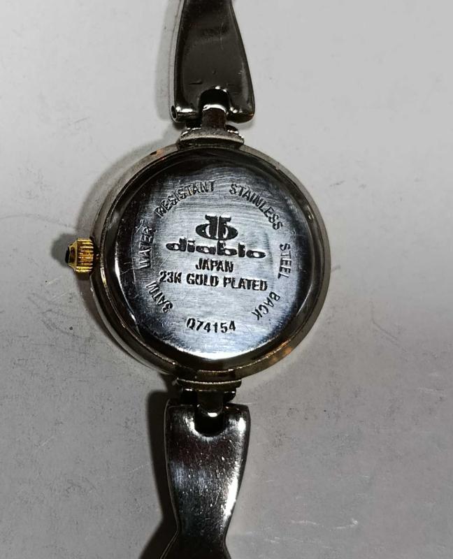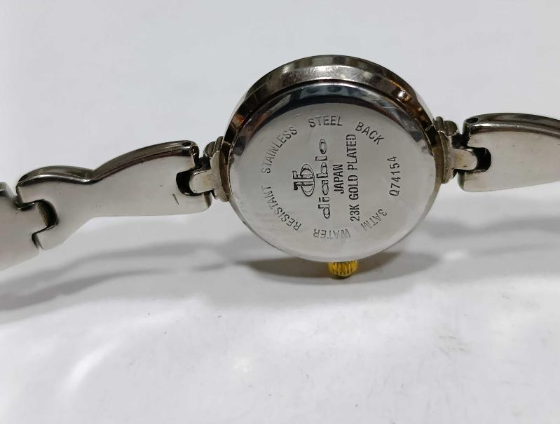 * JAPONYA ÜRETİMİ DIABLO MARKA BAYAN KOL SAATİ 23 AYAR ALTIN KAPLAMA OLUP QUARTZ MEKANİZMADIR. * SAAT ÇALIŞIR DURUMDA OLUP YÜKSEK KONDİSYONDADIR. * DİĞER İLANLARIMA DA BAKINIZ.