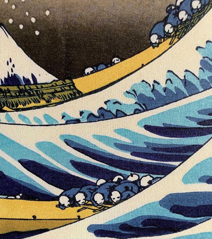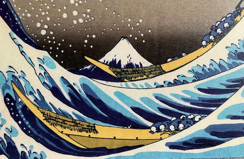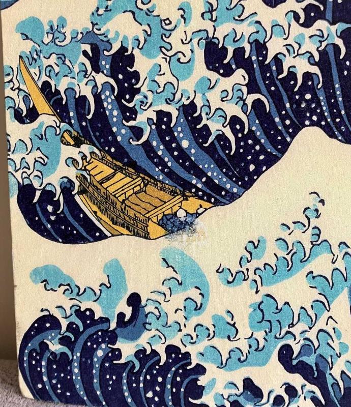 JAPON SANATÇI HOKUSAİ'NİN KANAGAWA OKİ NAMİ URA ADLI ESERLERİNİN KANVAS TABLOSU.TUVAL ÜZERİNE RESMEDİLMİŞTİR. KONDİSYON YÜKSEK. 40 X 50 CM