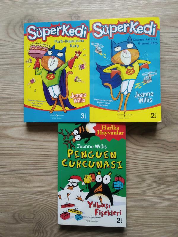 1. Kitap : Süper Kedi Kızarmış Patates Hırsızına Karşı Sayfa Sayısı - 224 2. Kitap : Süper Kedi Parti Huysuzuna Karşı Sayfa Sayısı - 208 3. Kitap : Penguen Curcunası Yılbaşı Fişekleri Sayfa Sayısı - 192 Kitaplar İyi Durumdadır