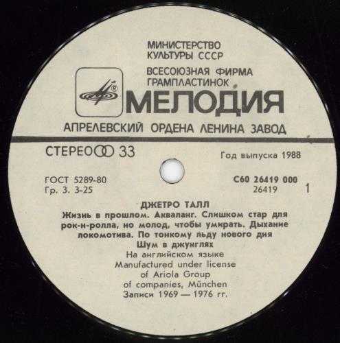 JETHRO TULL "Original Masters" - 1988 / USSR vinyl LP & ( Д Жетро Taлл Chrysalis - 1988 / CCCP), en son 5 ay önce güncellenmiştir.