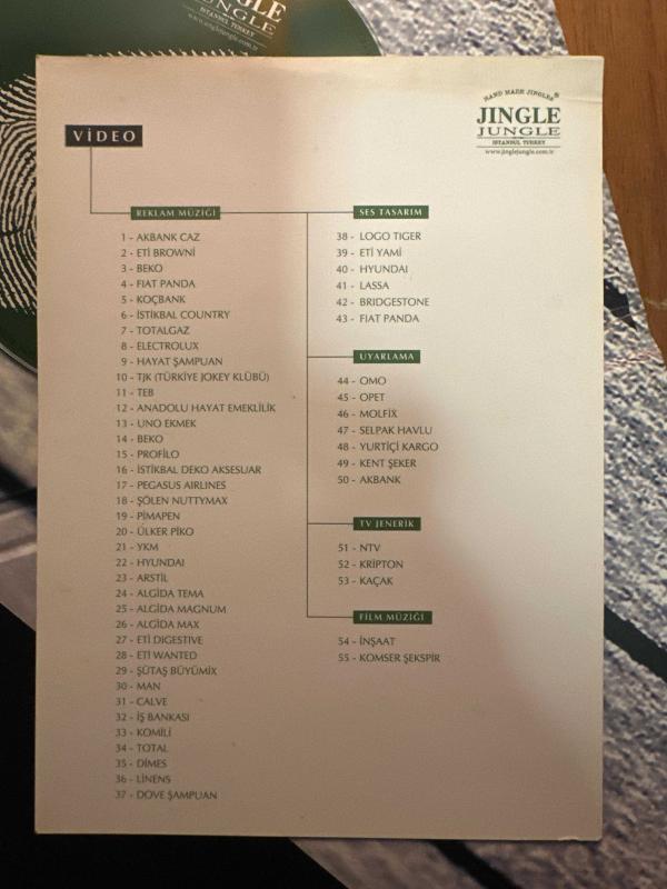 JINGLE JUNGLE HAND MADE JINGLES -FİLM, MÜZİK,JENERİK VE FİLM MÜZİĞİ CD+DVD (İŞ BANKASI,OMO,BEKO,PROFİLO,KOMİLİ,ALGİDA,NTV,LASSA,PEGASUS.............), 23 saat önce satışa sunulmuştur.