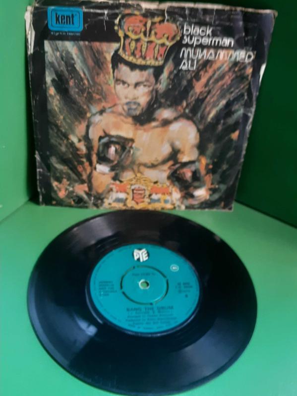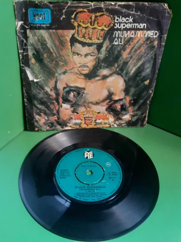 🎵 Black Superman – Muhammad Ali (A) / Bang The Drum (B) Yabancı 45’lik plak, orijinal baskı. Muhammad Ali’ye atfedilen konuşmalı/ritmik kayıt; koleksiyonluk. 📀 Durum: İyi 🎶 Dinlemelik & vitrinlik