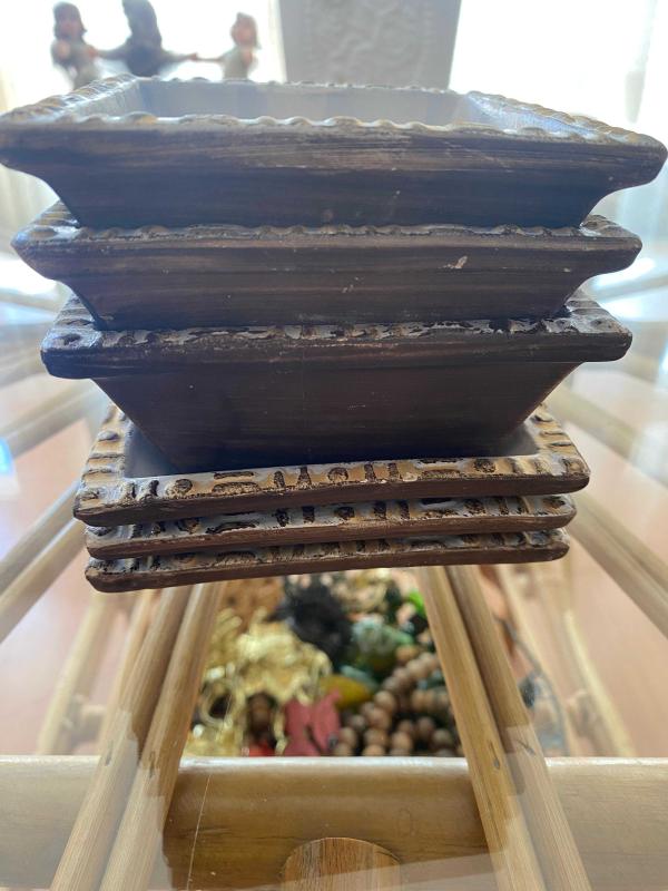 Jti özel koleksiyon el boyama tasarım kase. Üç tanesi derin aç tanesi tabak şeklindedir. Bir tanesinin köşesinde atık vardır. Bir tanesi çatlak fakat kullanıma engel değildir