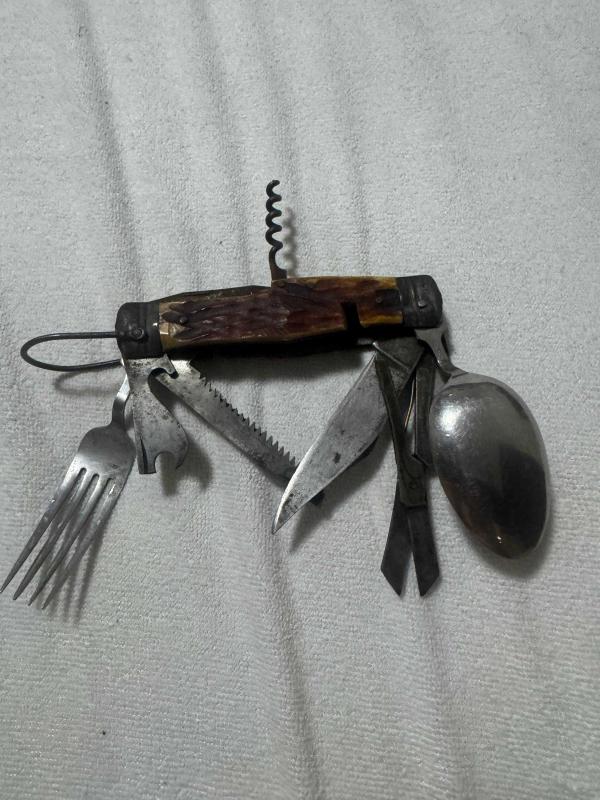 Japon Askerlerinin savaşta kullandığı Vintage Çok Amaçlı Alet Hobo Kamp Paslanmaz Çelik Cep Bıçağı Eski İzci Hobo Kamp Çakısı, Kaşık ve Çatal Aletleri, 16 gün önce kitantik’te satışa sunulmuştur.