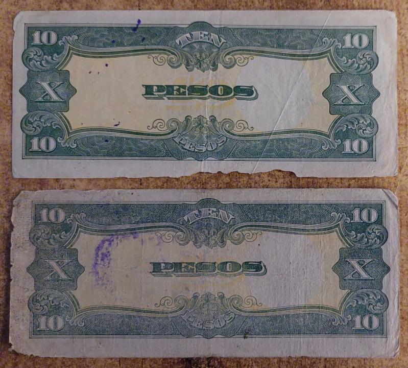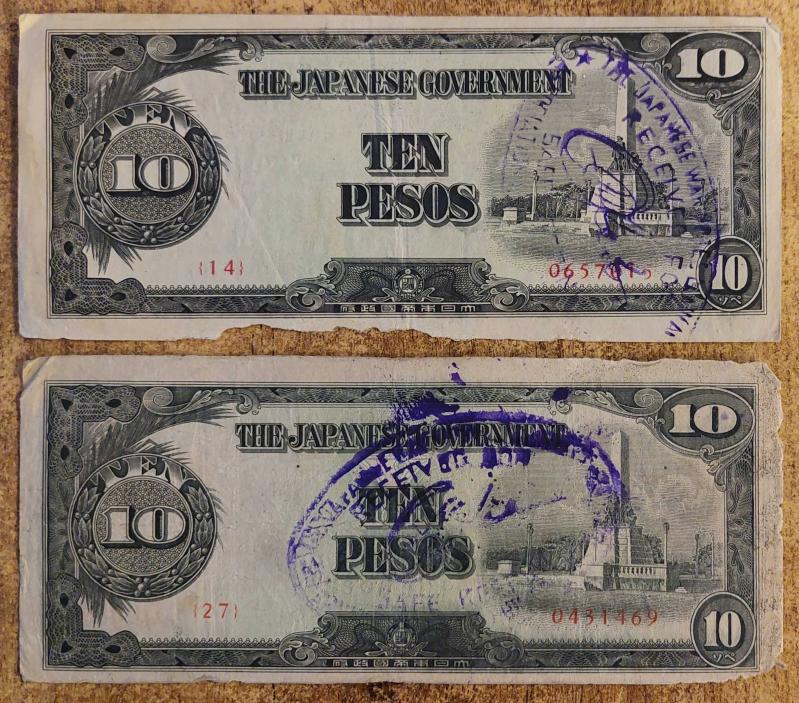 Japonya, 10 Pesos "Flipinler" Japon İşgali Banknot'u 1942. 2 Adet Farklı Seri / Mühürler Mevcuttur. (Haliyle)