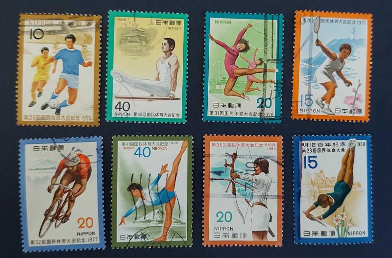 Japonya Spor konulu damgalı pullar lotu, bir ay önce satışa sunulmuştur.