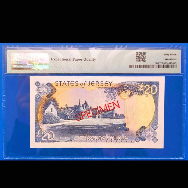 Jersey 20 pound 1993 Specimen Çil PMG 67 EPQ Yüksek kondisyon "Kraliçe Elizabeth", 4 ay önce satışa sunulmuştur.