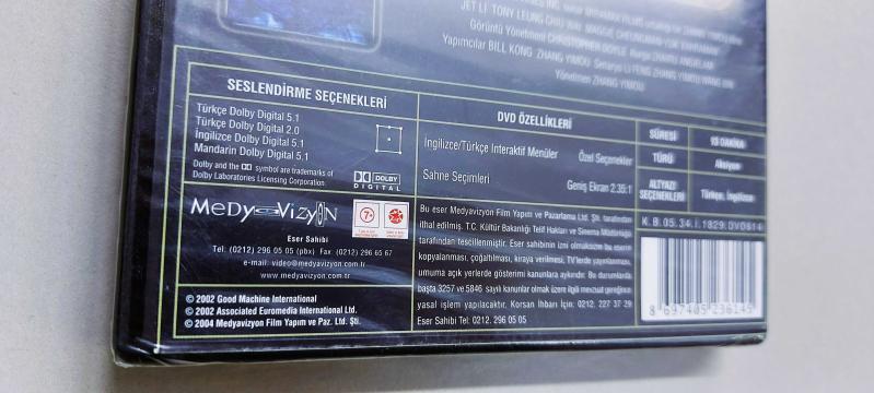 2002 yılında vizyona giren, Jet Li'nin efsane filmlerinden ''Kahraman''. DVD, 2004 yılında basılmıştır. Üretildiği yıldan bu yana -yaklaşık 22 yıldır- ambalajı hiç açılmamıştır. Türkçe dublaj ve Türkçe altyazı mevcuttur. Kamera arkası, Quentin Tarantino ile Jet Li'nin özel söyleşisi ve ekran süresini tatmin edici derecede uzatan daha pek çok özel seçenek disk içerisinde mevcuttur. Fiziksel olarak DVD film koleksiyonu yapanlar ve filmin hayranları için arşivlik bir üründür.