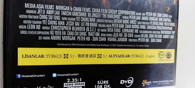 2007 yılında vizyona giren, Jet Li'nin efsane filmlerinden The Warlords. 2011 baskısıdır. Disk sıfır ayarındadır. Test edilmiştir, sorunsuz çalışmaktadır. Türkçe dublaj ve Türkçe altyazı mevcuttur. Fiziksel olarak DVD film koleksiyonu yapanlar ve filmin hayranları için arşivlik bir üründür.