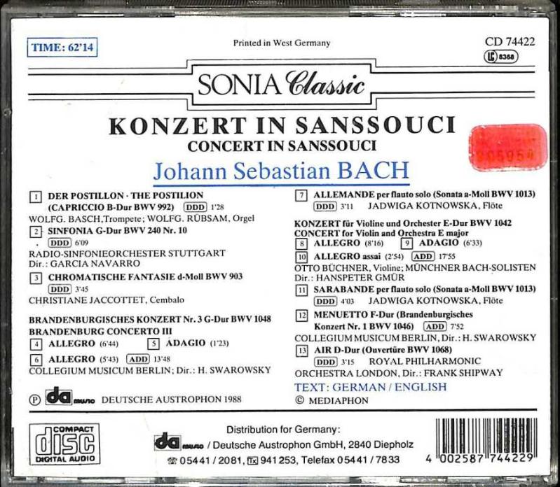 Johann Sebastian Bach *Konzert In Sanssouci * ( İkinci El ) CD Müzik CD1619, en son 19 gün önce güncellenmiştir.