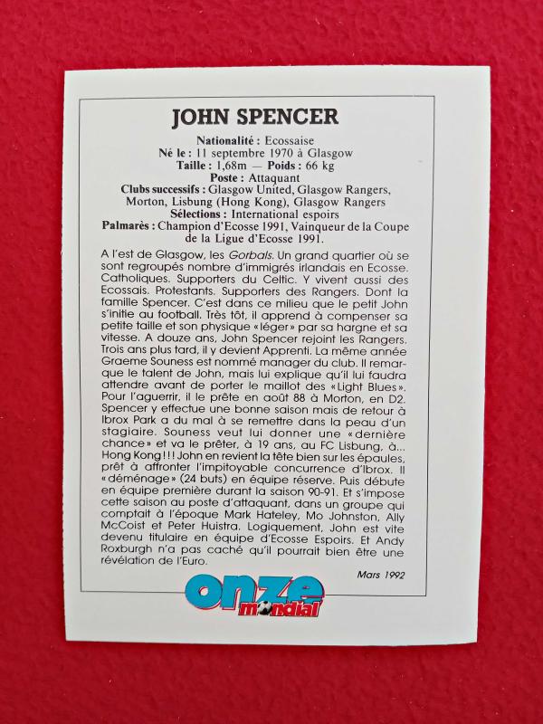 John Spencer - Onze Mondial Football Collection Photo Card - 14X10 cm - Futbol Koleksiyon Fotokart, en son 2 ay önce güncellenmiştir.