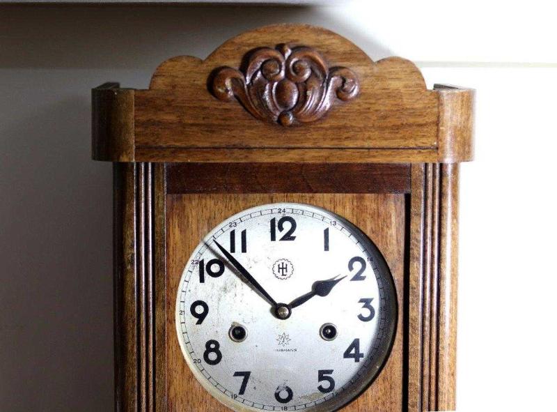 Junghans ahşap çalarlı Alman duvar saati. 55x23x16 cm. başlıklı antika/koleksiyon objesinin menşei belirtilmemiştir. Objenin ait olduğu dönem bilinmeketedir.