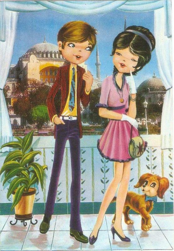 K-76-AYASOFYA GENÇ ÇİFT TEMALI ÇİZİM ESKİ KARTPOSTAL, 5 yıl önce satışa sunulmuştur.