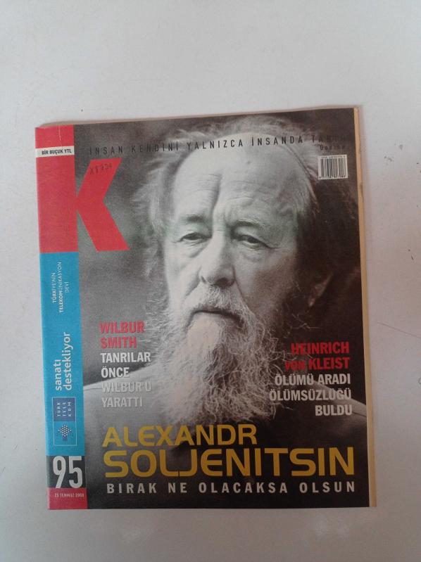 K Dergi Gazetesi - 25 Temmuz 2008 - Sayı 95 - Alexander Soljenitsin Fotoğrafı - Cem Yılmaz Telefon Reklamı - Wilbur Smith - Tanrılar Önce Wilbur'u Yarattı - Heinrich Von Kleist adlı eser Türkçe dilindedir.