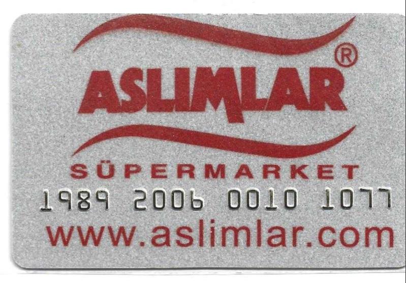 K = MARKET ve ALIŞ VERİŞ KARTI ( ASLIMLAR * SÜPERMARKET ) PLASTİK - TEMİZ ve NADİR, en son 2 yıl önce güncellenmiştir.