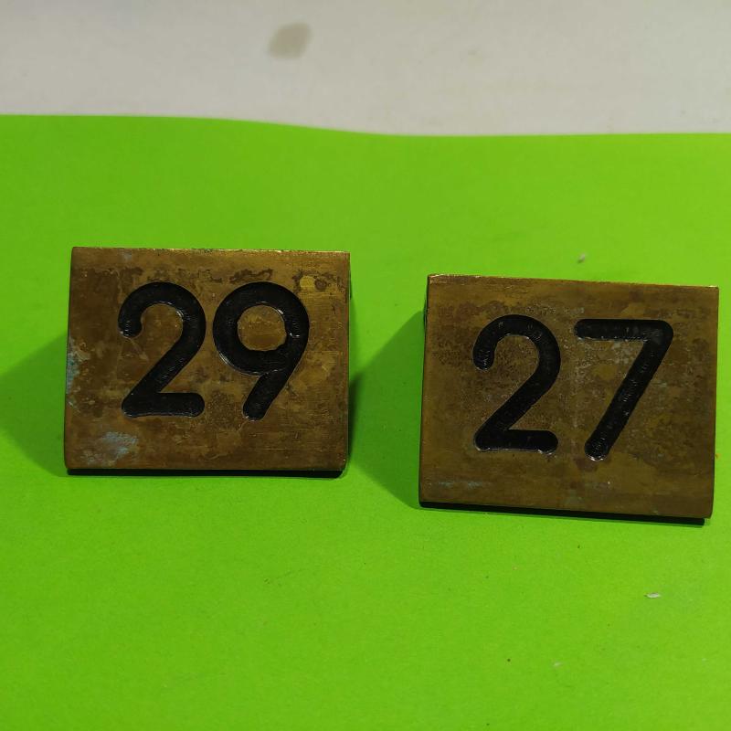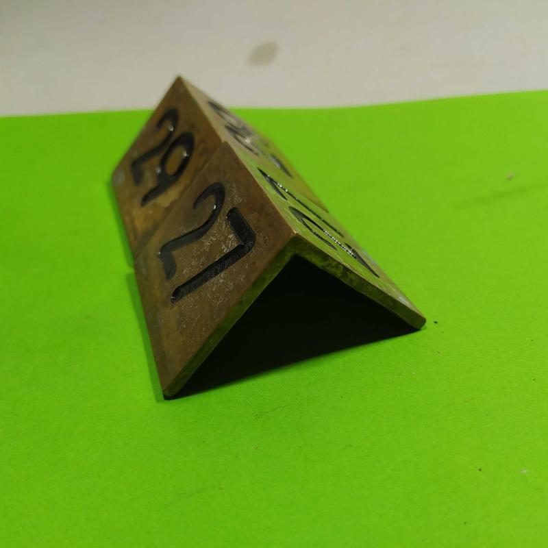 K1-----İKİ ADET ÜÇGEN PİRİNÇ MASA NUMARASI başlıklı antika/koleksiyon objesinin menşei belirtilmemiştir. 1980-1999 arası dönemine aittir.