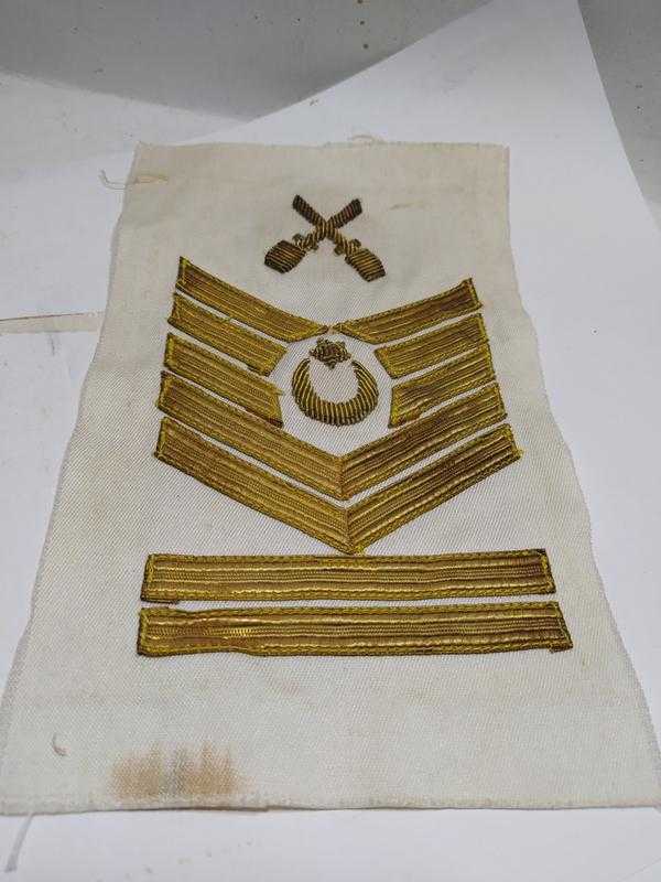K104----SIRMA İŞLEMLİ DENİZCİ ASKERİ KOL RÜTBESİ başlıklı antika/koleksiyon objesinin menşei belirtilmemiştir. Objenin ait olduğu dönem bilinmeketedir.