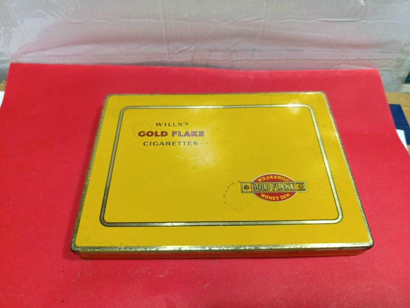 K113----1970'LER GOLD FLAKE TENEKE SİGARA KUTUSU başlıklı antika/koleksiyon objesinin menşei belirtilmemiştir. Objenin ait olduğu dönem bilinmeketedir.
