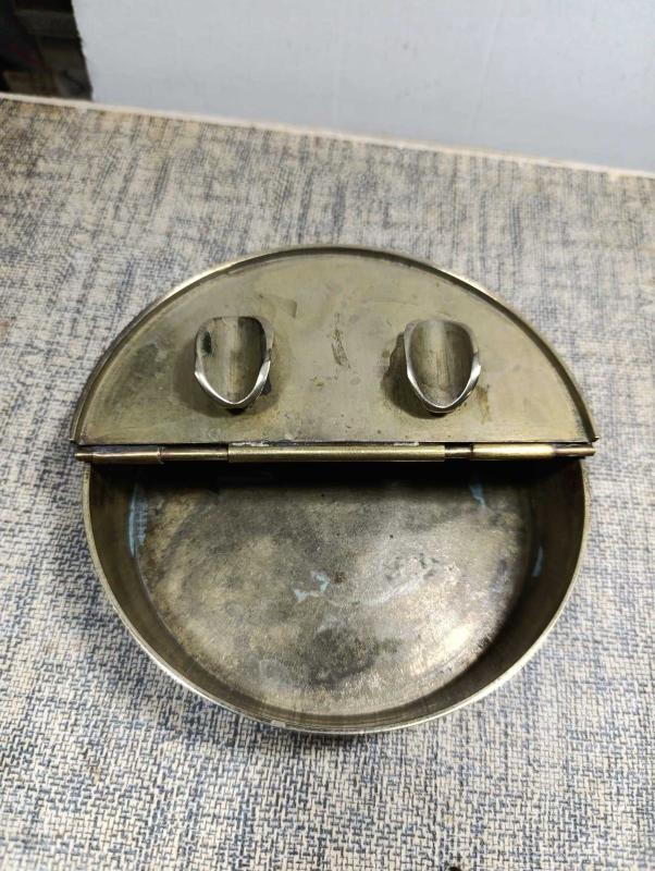 K116----KAPAKLI ESKİ PİRİNÇ KÜL TABLASI-KÜLLÜK başlıklı antika/koleksiyon objesinin menşei belirtilmemiştir. Objenin ait olduğu dönem bilinmeketedir.