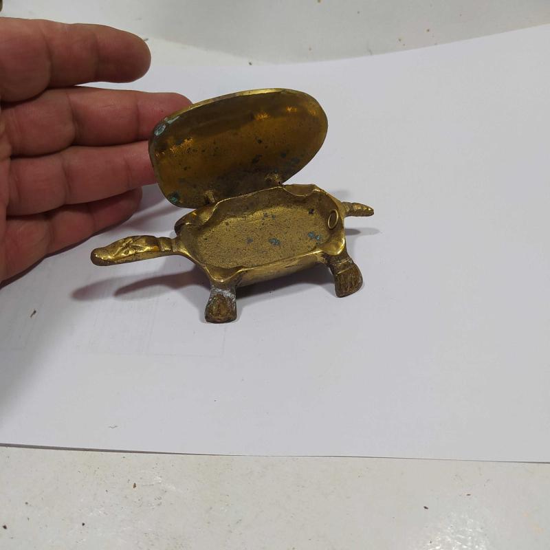 K116-----------PİRİNÇ DÖKÜM KAPLUMBAĞA KÜLLÜK başlıklı antika/koleksiyon objesinin menşei belirtilmemiştir. Objenin ait olduğu dönem bilinmeketedir.