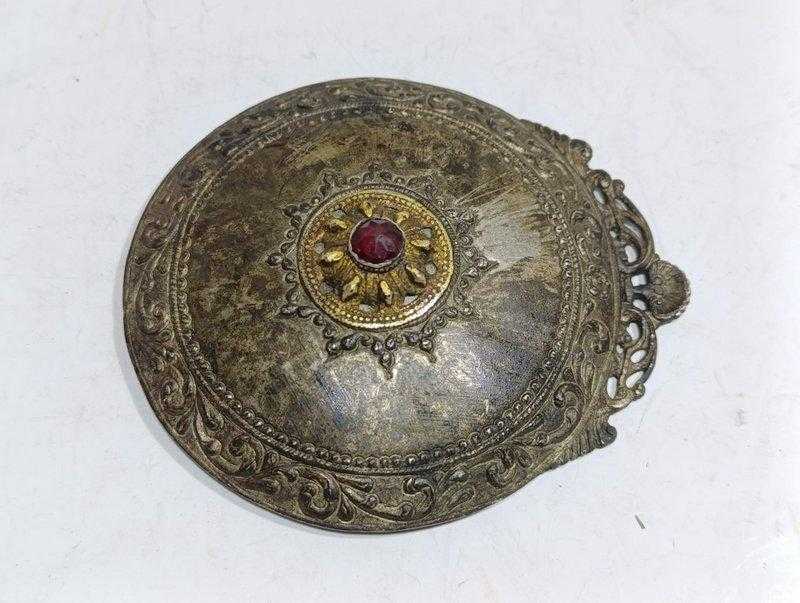K117------OSMANLI TAŞLI PİRİNÇ TEK KEMER TOKASI başlıklı antika/koleksiyon objesi Uzak Doğu menşe’lidir. 1940 sonrası dönemine aittir.