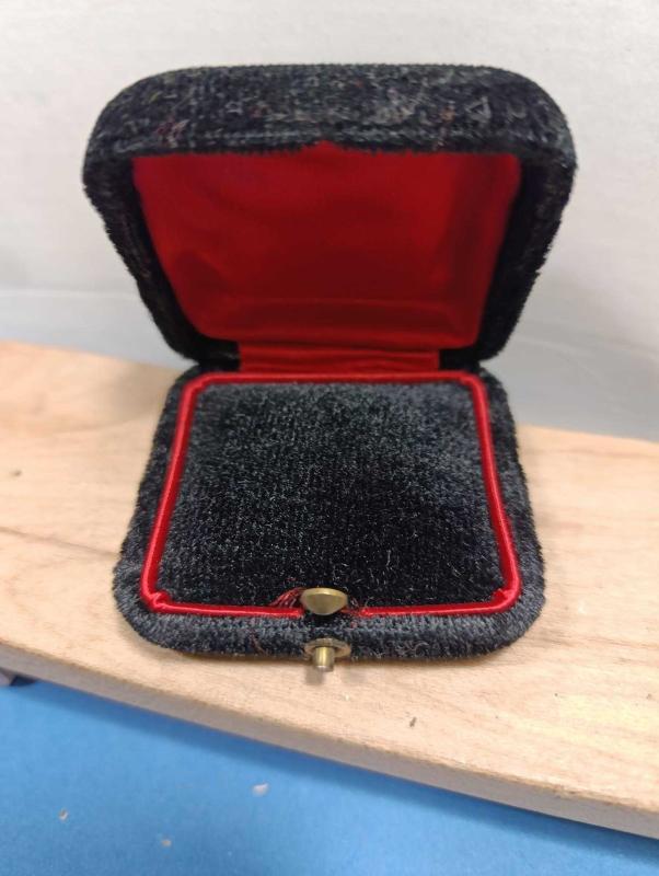 K127----KADİFE KAPLAMA YAŞLI TAKI KUTUSU başlıklı antika/koleksiyon objesinin menşei belirtilmemiştir. Objenin ait olduğu dönem bilinmeketedir.