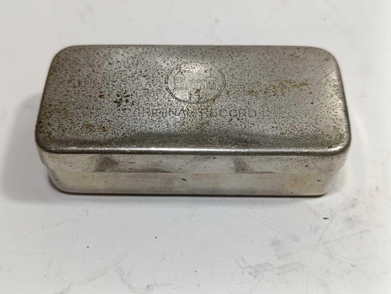 K127---ORIGINAL REKORD ESKİ ŞIRINGA KUTUSU başlıklı antika/koleksiyon objesinin menşei belirtilmemiştir. Objenin ait olduğu dönem bilinmeketedir.