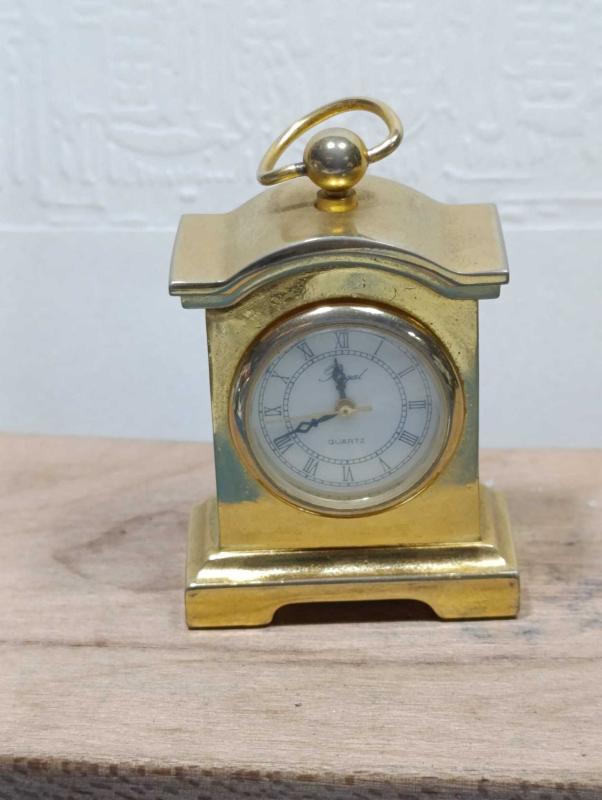 K203------ALTIN RENGİ PİLİ BİTİK KÜÇÜK BOY MASA SAATİ başlıklı antika/koleksiyon objesi Avrupa menşe’lidir. 2000 ve sonrası dönemine aittir.