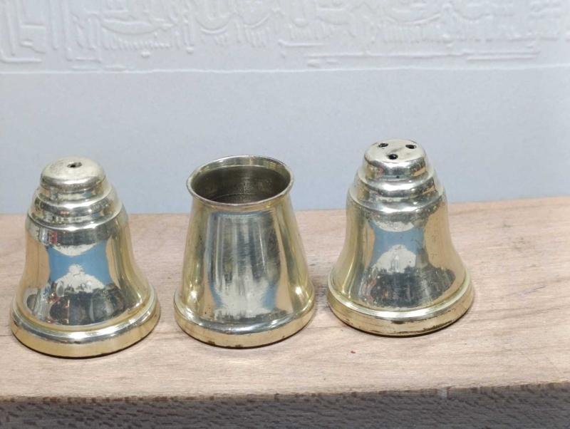 K204-----GÜMÜŞ KAPLAMA ESKİ TUZLUK BİBERLİK KÜRDANLIK başlıklı antika/koleksiyon objesinin menşei belirtilmemiştir. Objenin ait olduğu dönem bilinmeketedir.