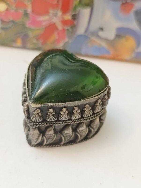 K204------KALP ŞEKLİNDE YEŞİL DOĞAL TAŞ KAPAKLI TÜRKMEN İŞİ KUTU başlıklı ürün, Antika-Koleksiyon, Hobi-Sanat > Koleksiyon Objeleri > Kutu > Diğer Kutular kategorisinde İkinci El olarak satışa sunulmuştur.
